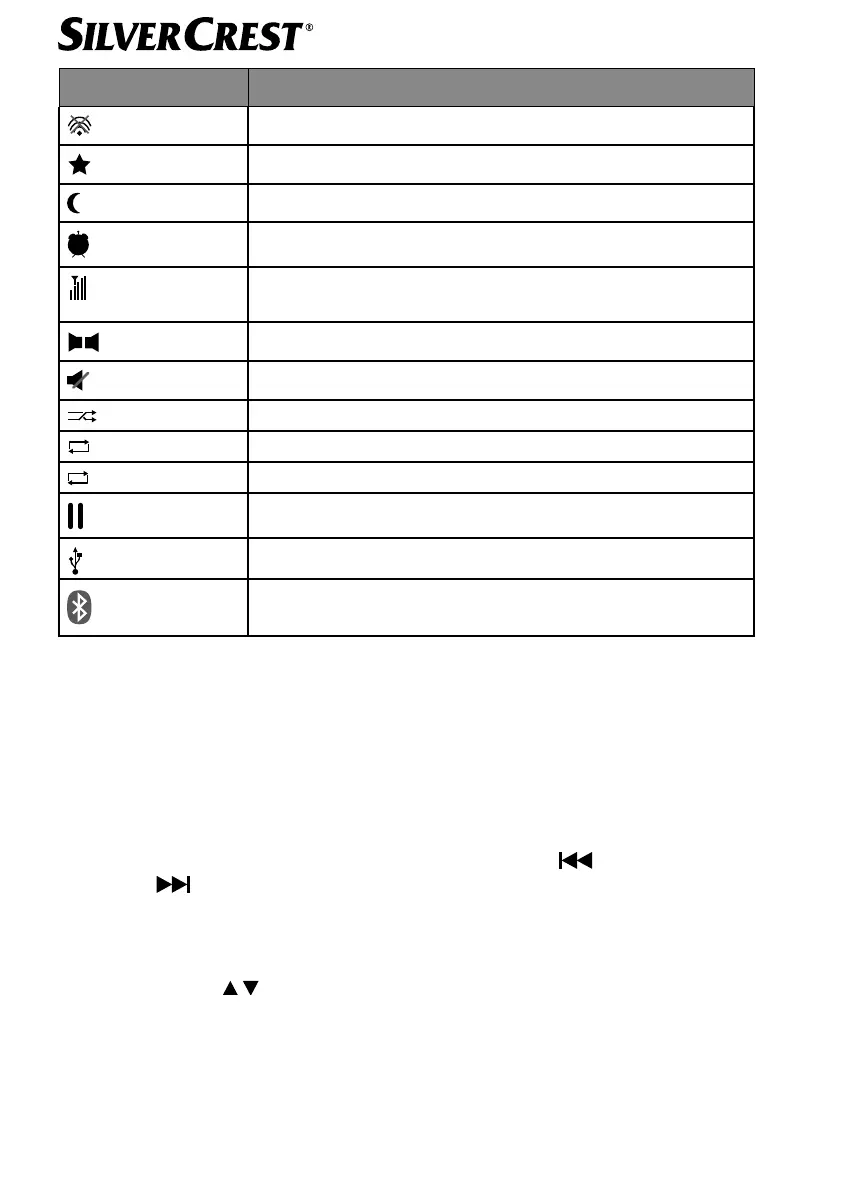 • Funkcie prehrávania hudby PLAY, STOP, predchádzajúca /nasledujúca