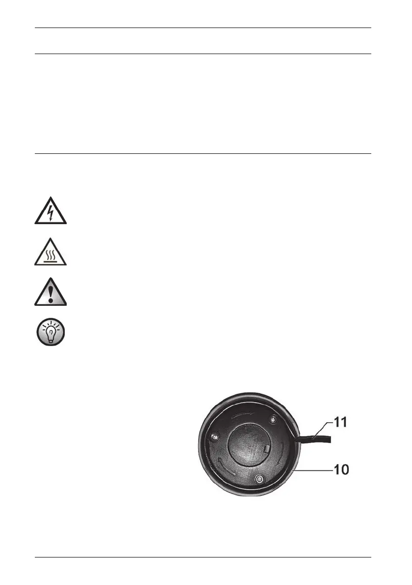 Zabráňte kontaktu podstavca (10) s vodou. Hrozí nebezpečenstvo úrazu elektrickým