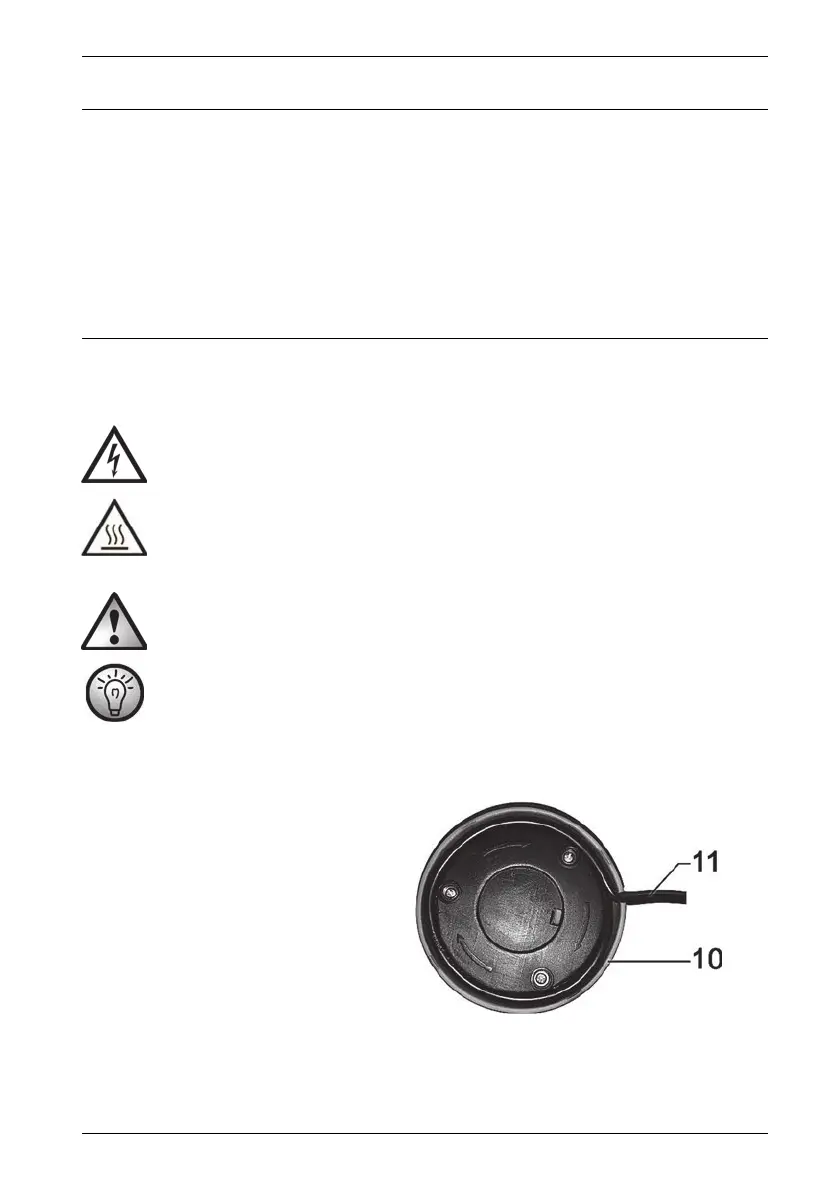 • Desenrolle el cable de alimentación (11) de la parte inferior de la base (10) en el sentido