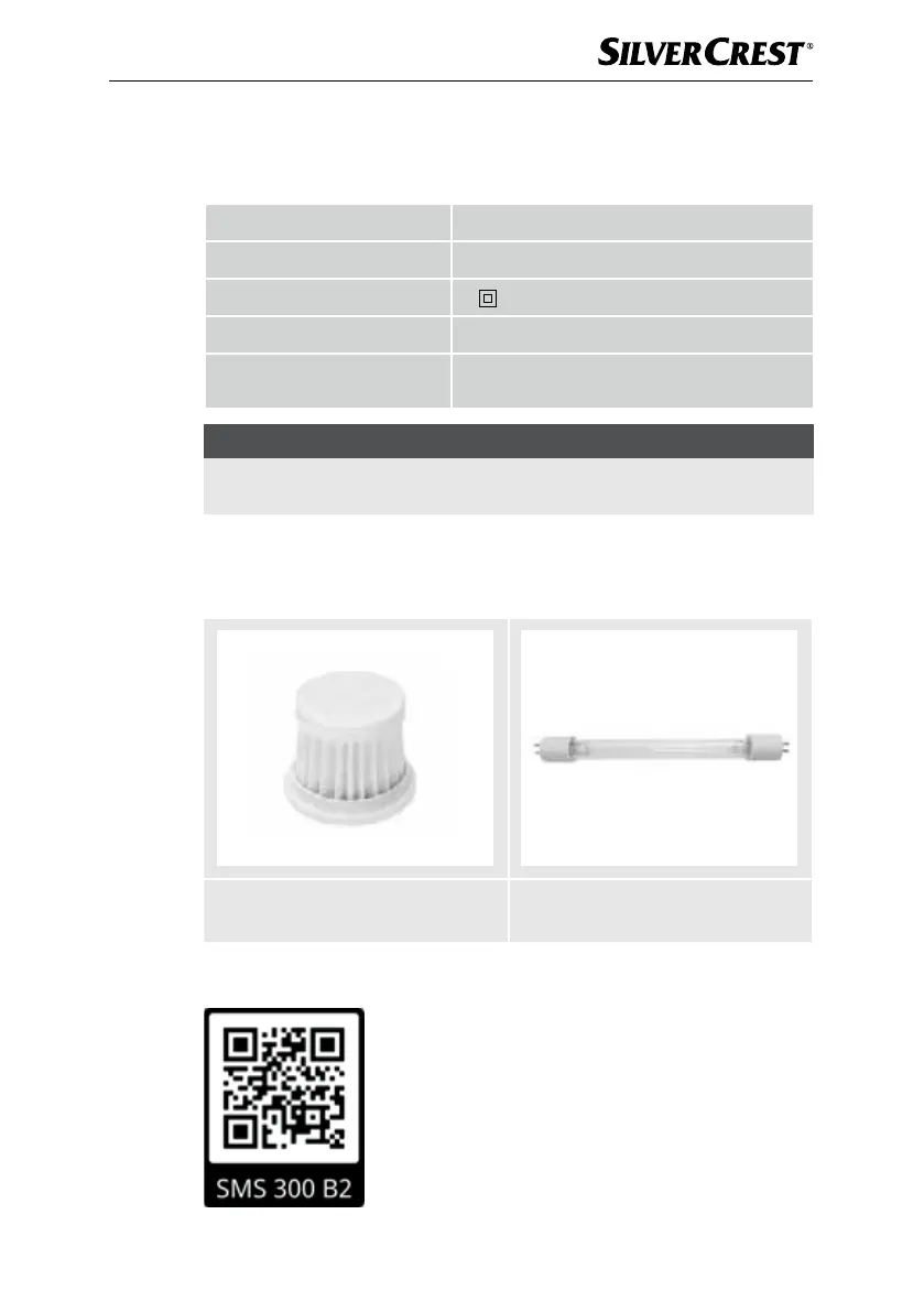 K výrobku SMS 300 B2 môžete objednať nasledovné náhradné diely: