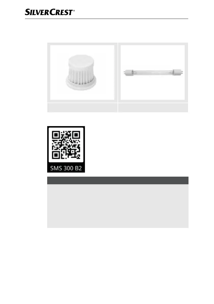 U kunt de volgende vervangingsonderdelen bestellen voor product SMS 300 B2: