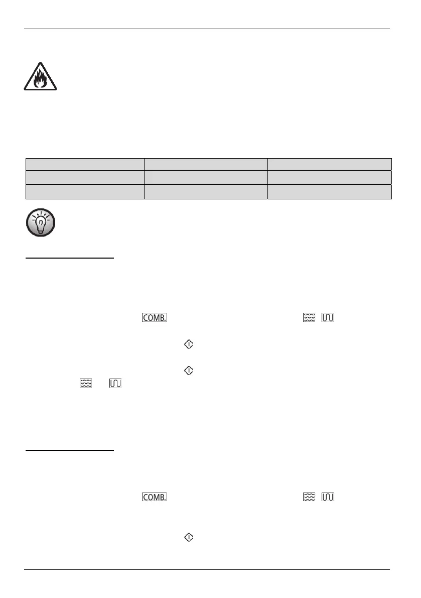 Never use the grill stands (13) or other metallic objects in combination mode. This can create