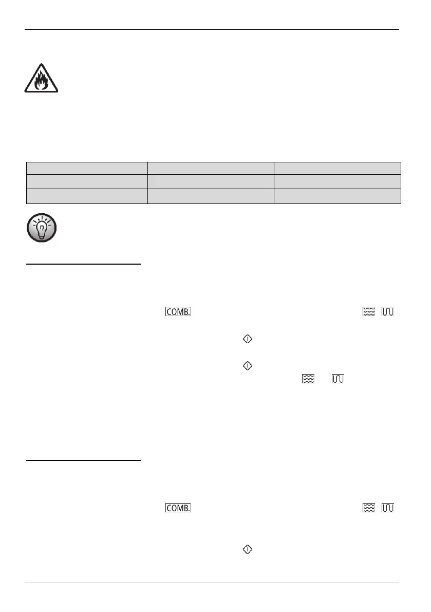 Diese Betriebsart verbindet Mikrowellenbetrieb und Grillbetrieb. Sie bietet sich an, wenn Lebensmittel