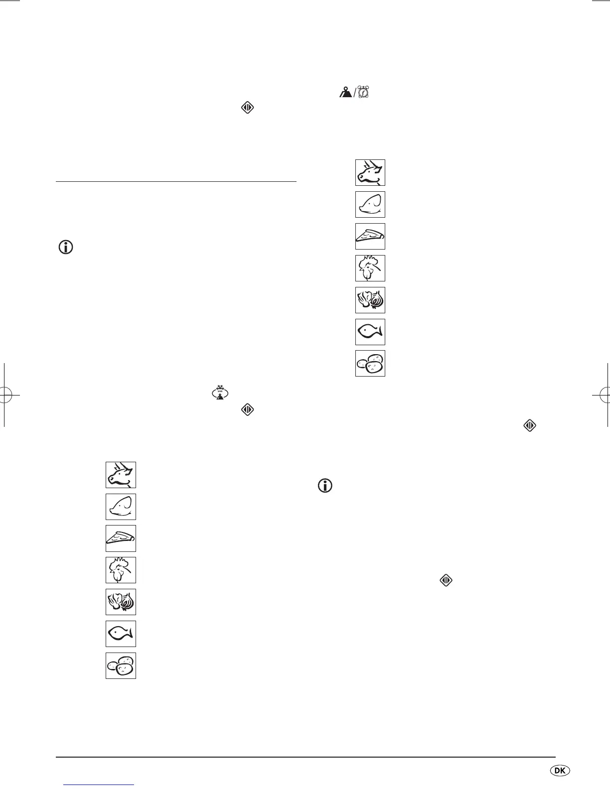 kød, fjerkræ og fisk. Optøningstiden og effekttrinet