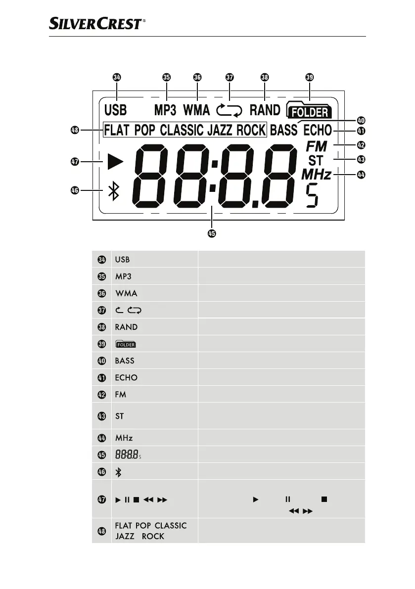 Frecuencia en MHz/tiempo de reproducción, etc.