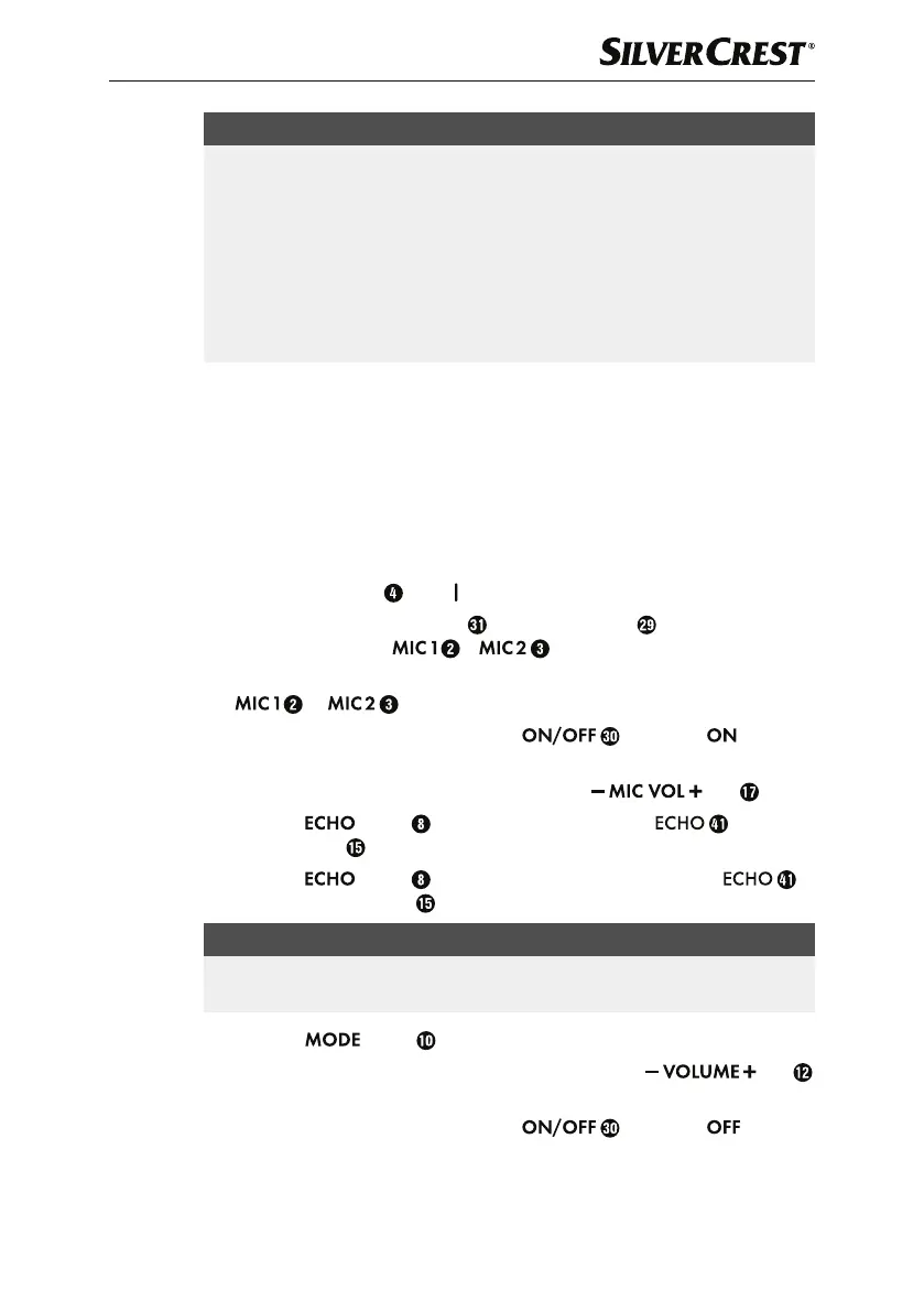 ♦ If required, connect a second microphone to the free 6.3 mm jack socket