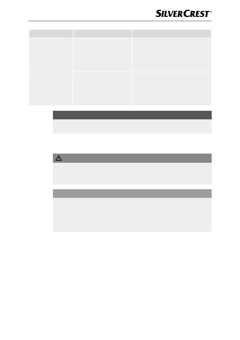 Fault Possible cause Remedy