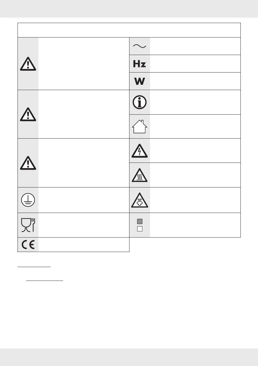 Liste der verwendeten Piktogramme/Symbole