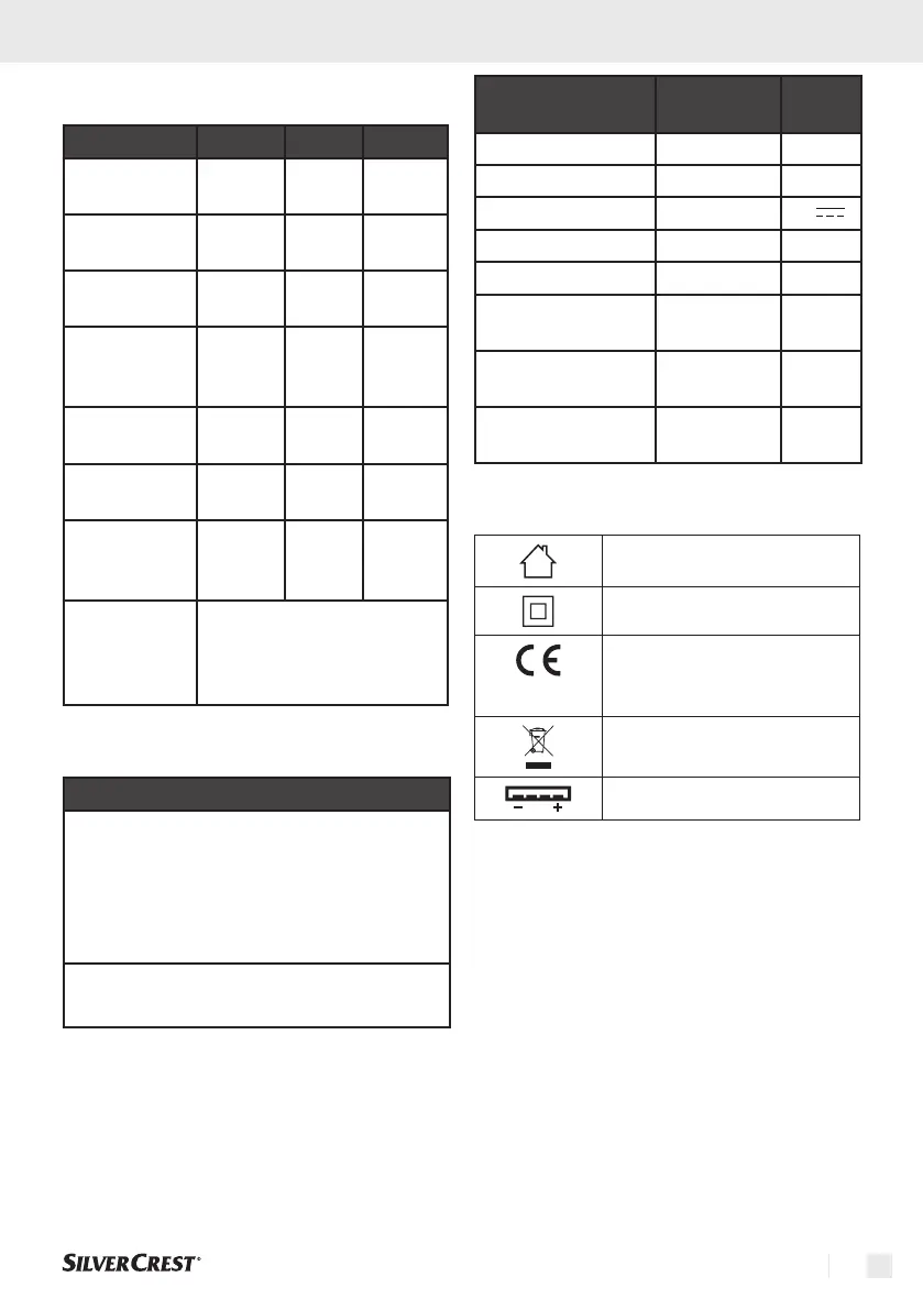 ErP table of the device: