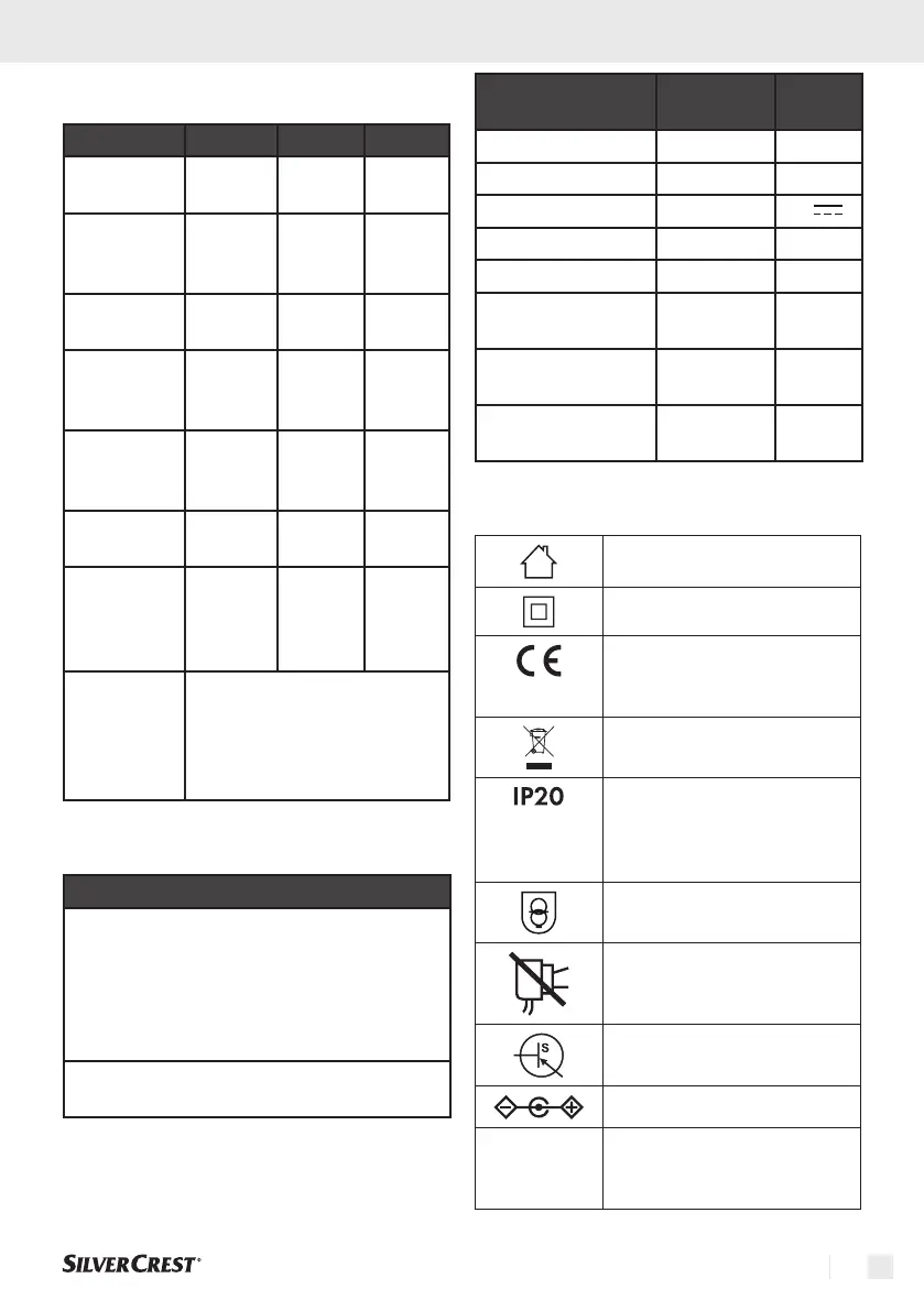 ErP-tabel van het apparaat: