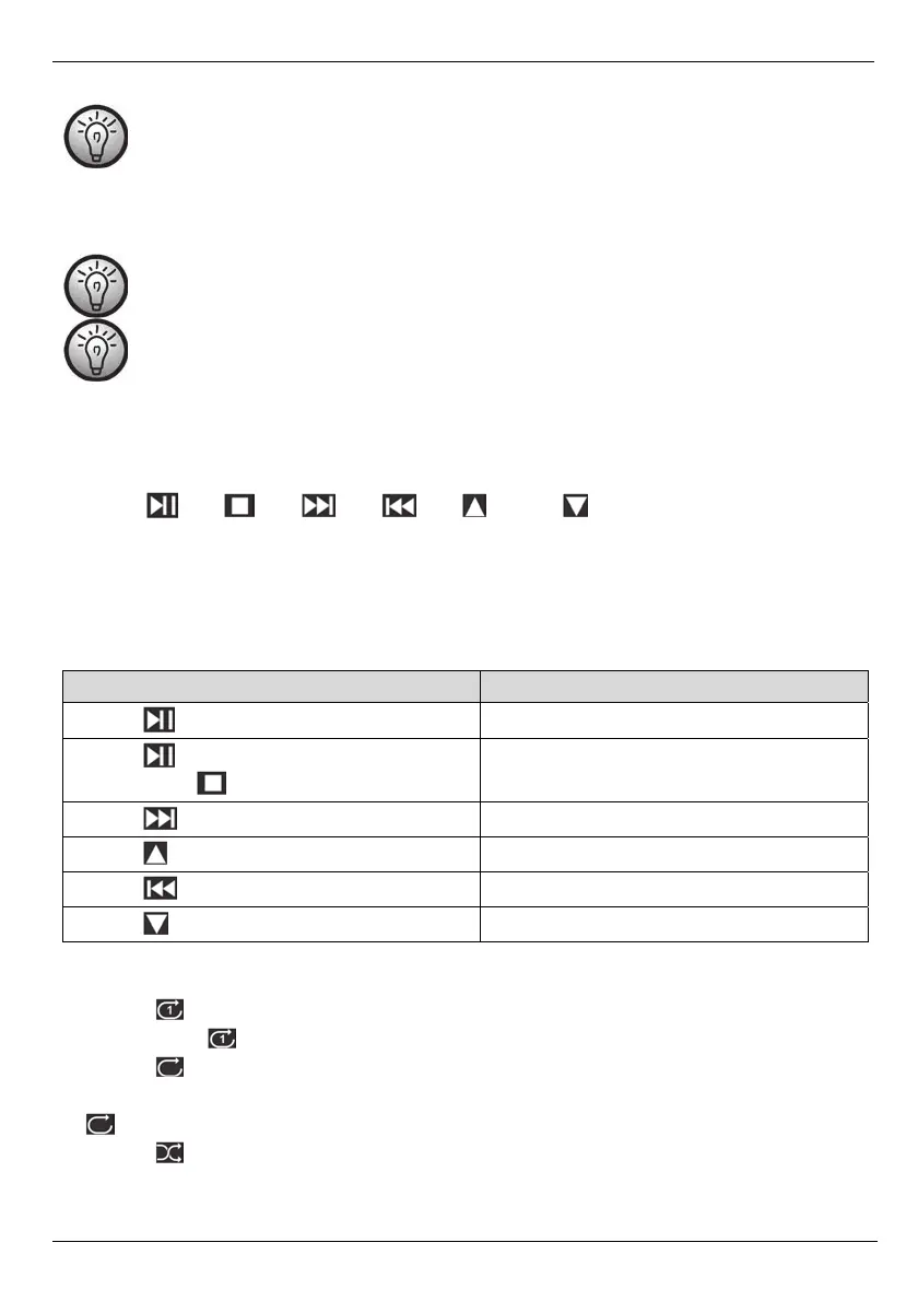 • Press the button (41) to repeat the currently playing track (status LED (6) lights up and then flashes