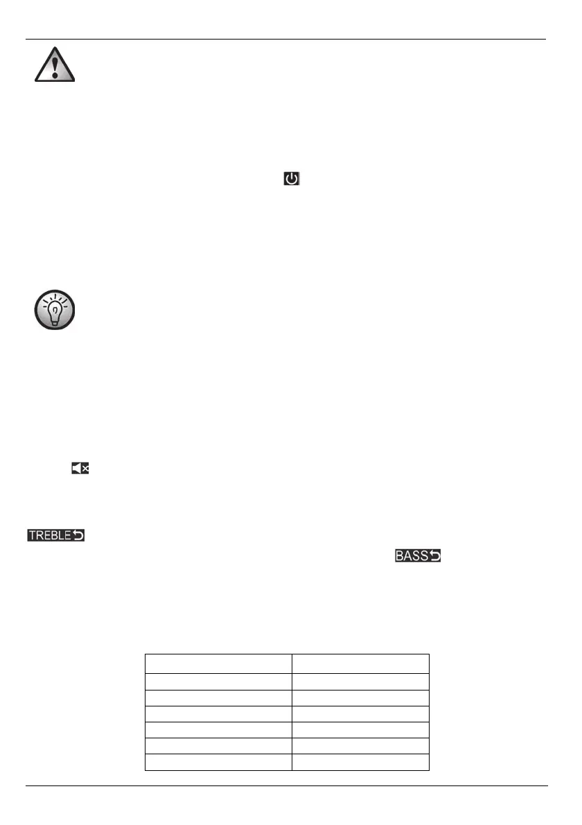 You can adjust the treble to your requirements using the TREBLE+ (28) and TREBLE- (33) buttons. Press the
