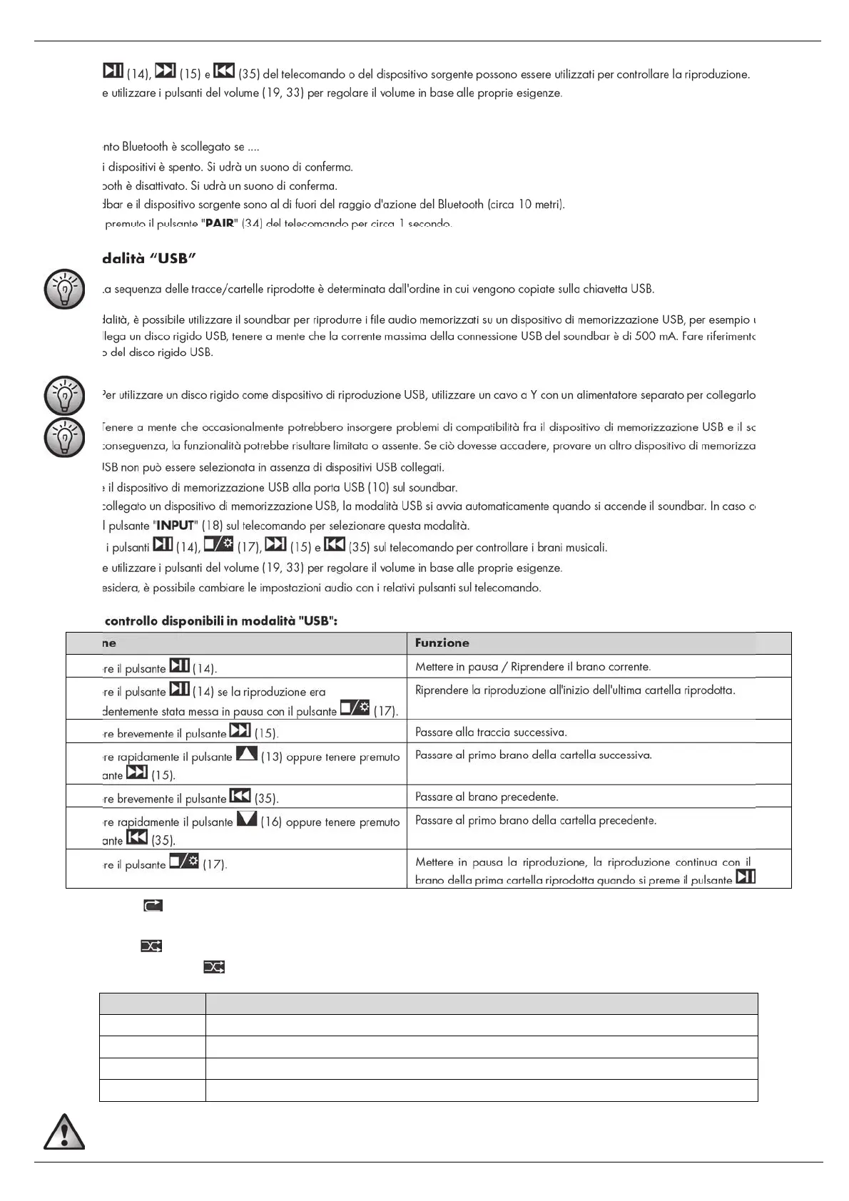 • Se è già collegato un dispositivo di memorizzazione USB, la modalità USB si avvia automaticamente quando si accende il soundbar. In caso contrario,