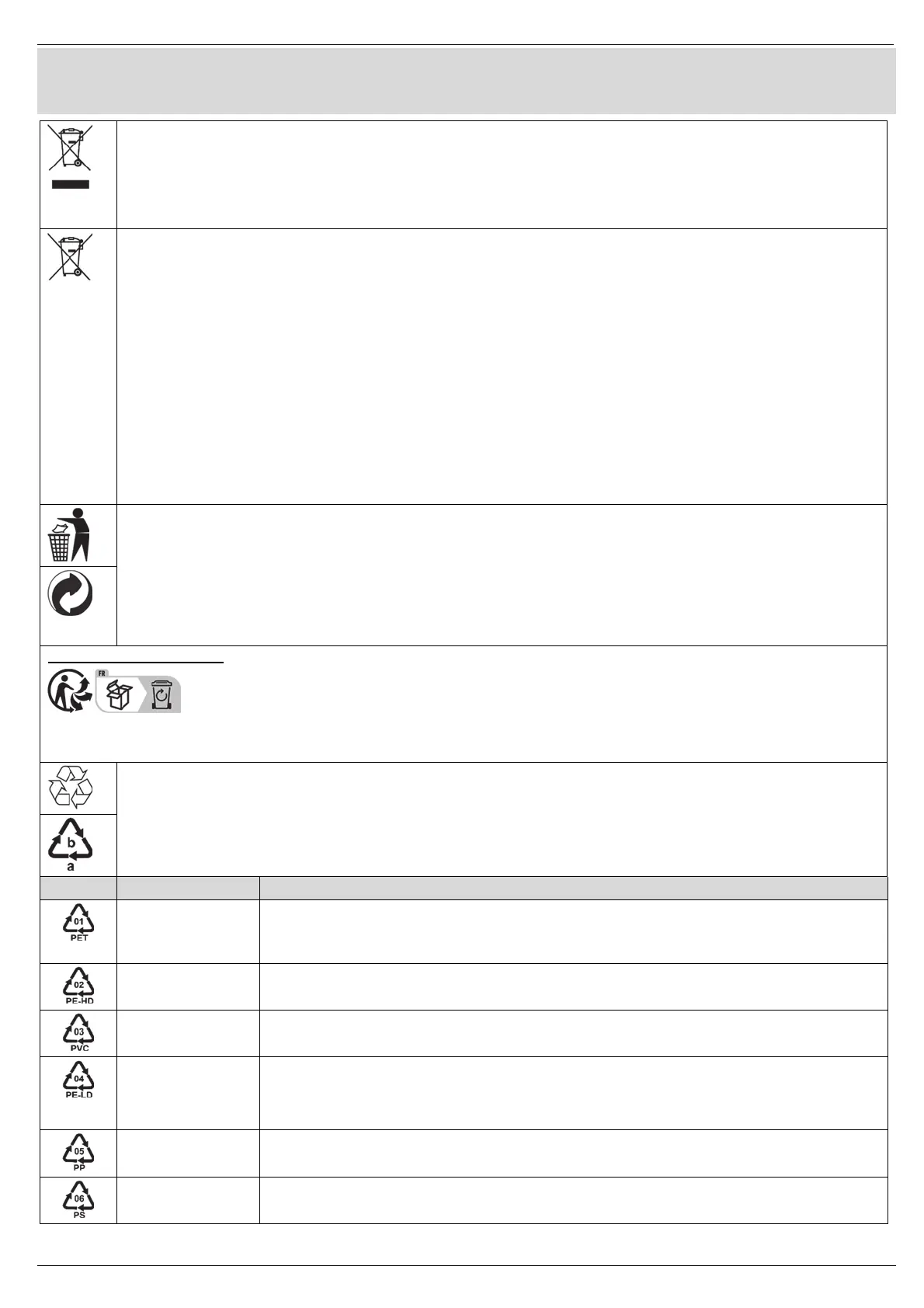 Symbol Materiał Zawarte w następujących elementach opakowania dla niniejszego produktu