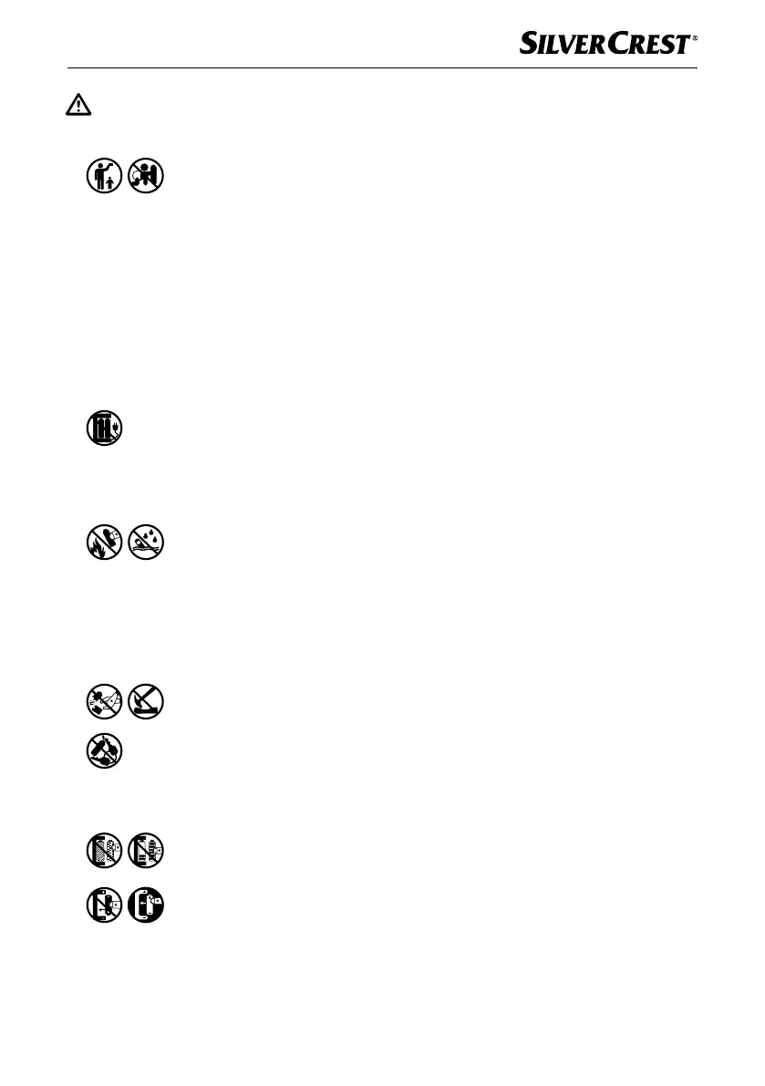 Werfen Sie Batterien niemals in Feuer oder Wasser.