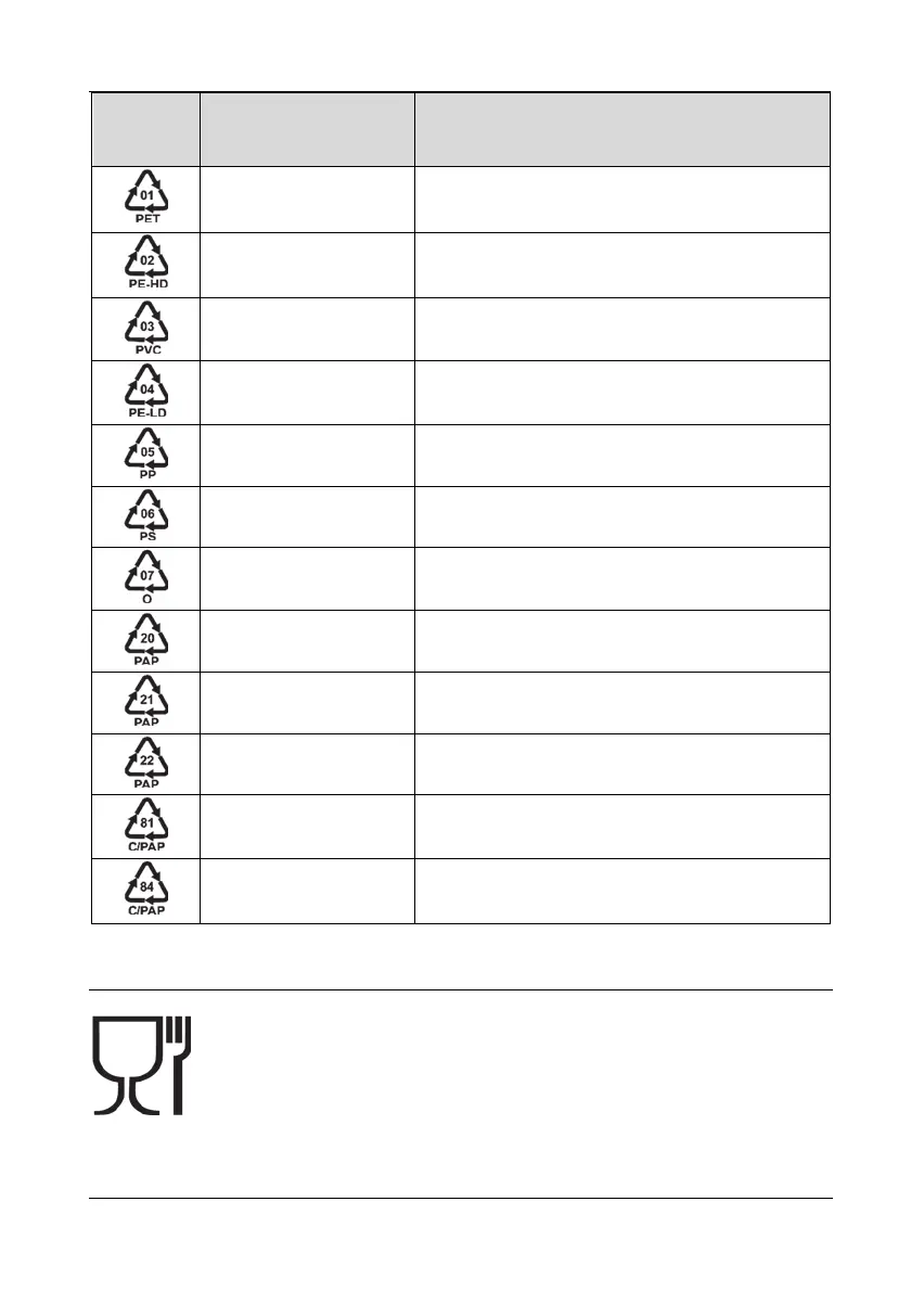 Symbol Material Contained in the following packaging