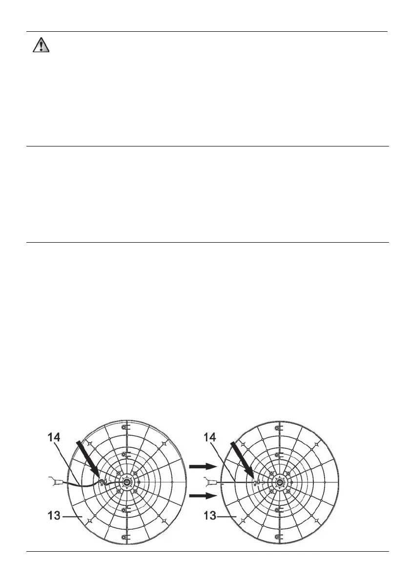 • Pase el cable de alimentación (14) por debajo de la base (13) como se indica en el diagrama