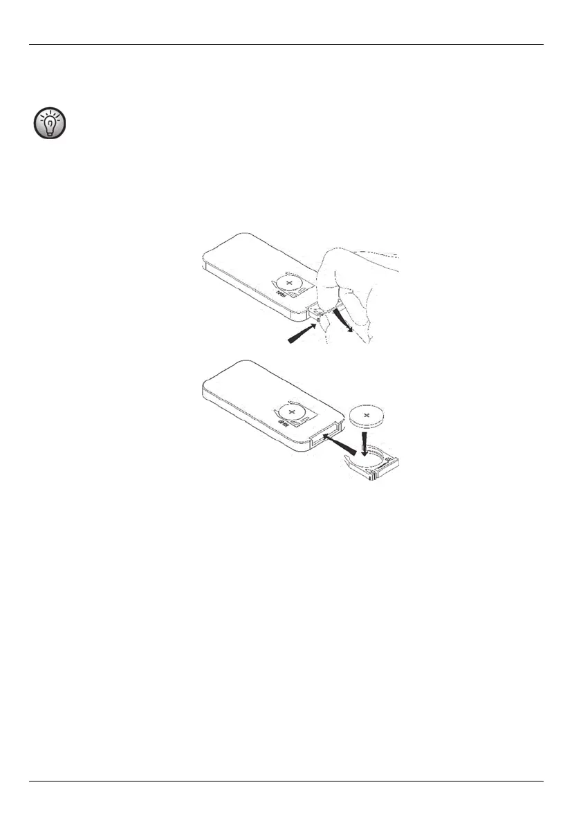 • Quite la pila agotada e inserte una pila nueva. Preste atención en la polaridad correcta (+/-).