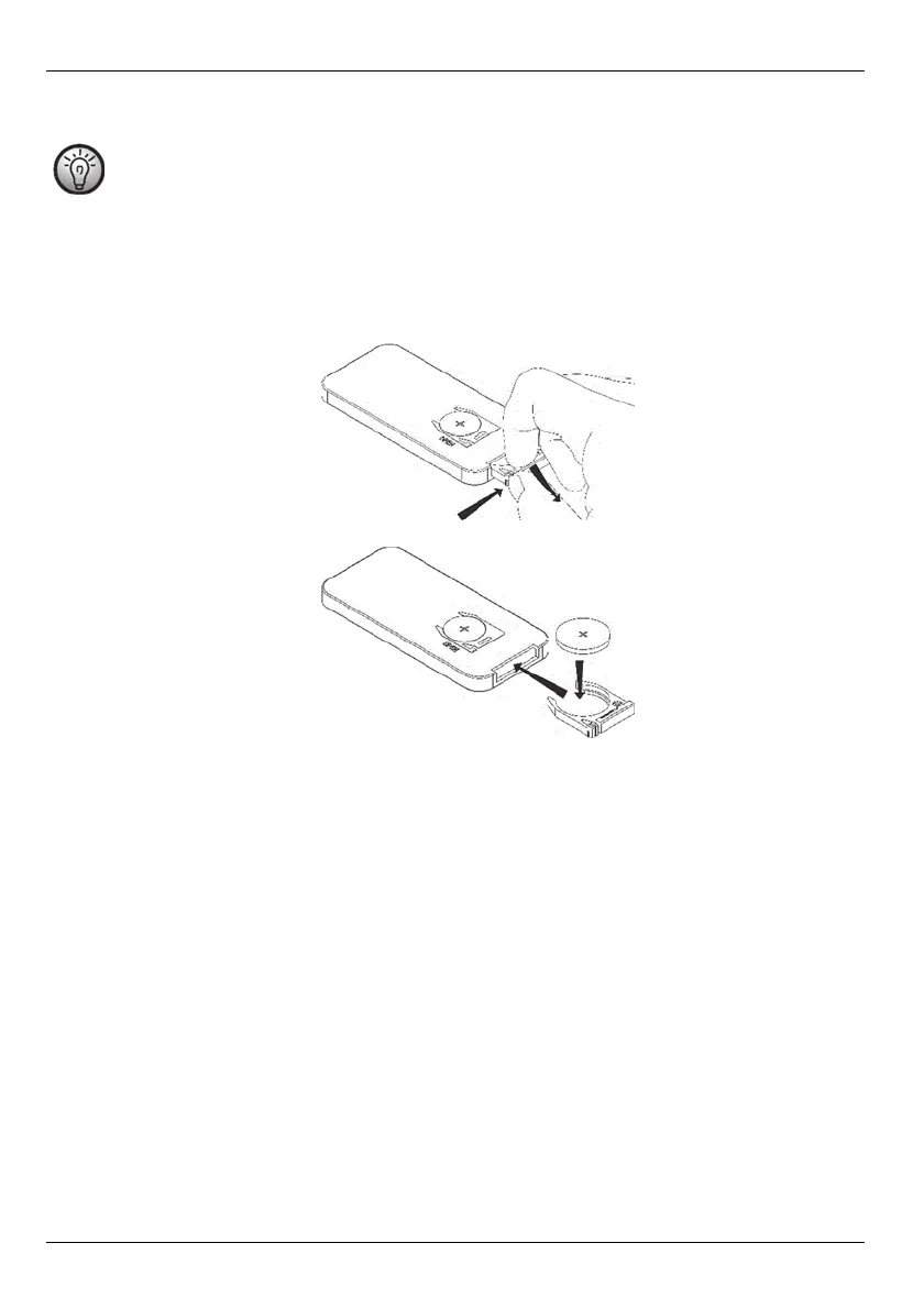 If the battery in the remote control (19) is empty, replace it with a new 3 Volt CR2025-type battery. The