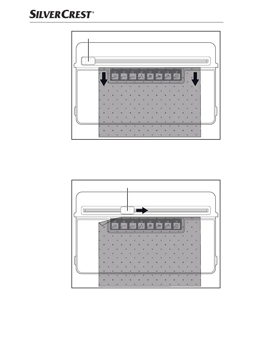 – Drücken Sie den Folienschneider A leicht herunter und ziehen Sie ihn
