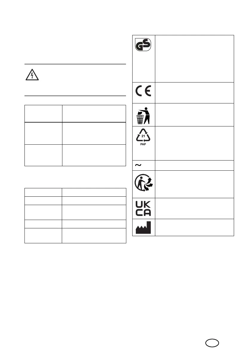 220 – 240 V ~ 50 – 60 Hz