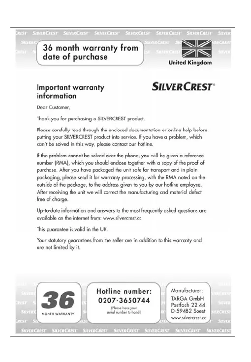 Silvercrest WE-2100 - Warranty Information