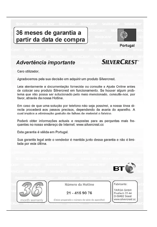 Silvercrest WE-2200 - Informação Relativa À Garantia