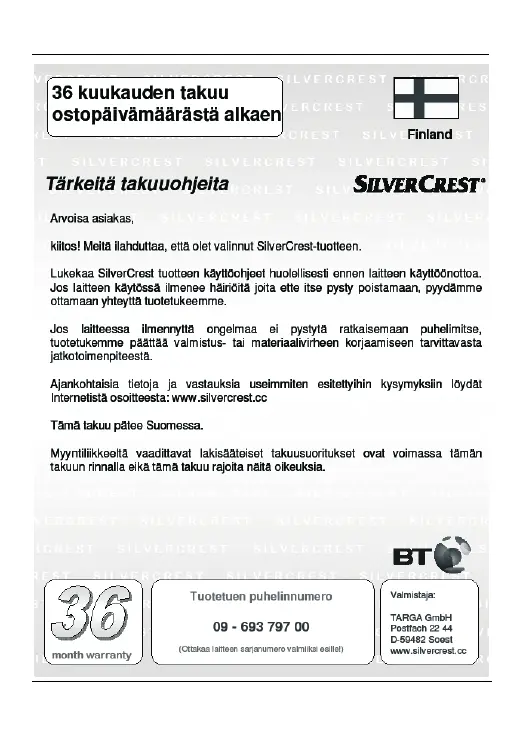 Silvercrest WE-2300 - Takuutiedot