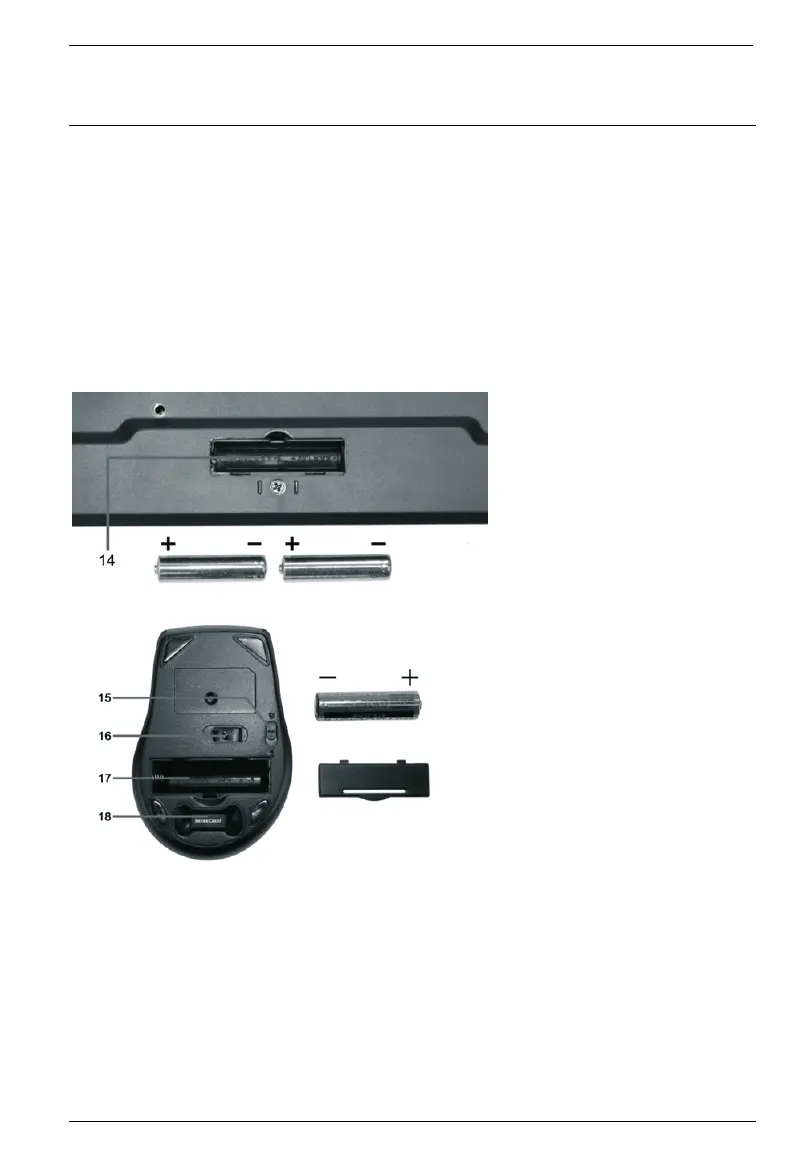 First insert the batteries into the wireless mouse and wireless keyboard, as