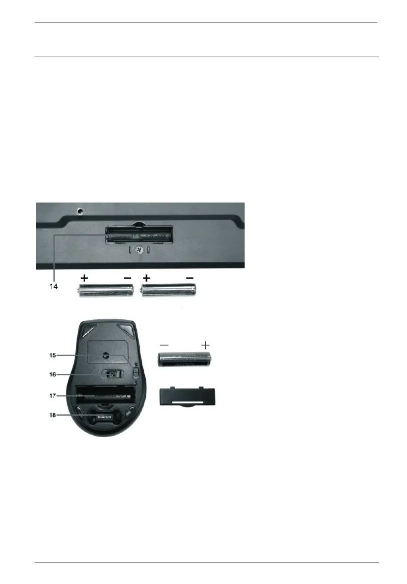 Először helyezze be az elemeket a vezeték nélküli billentyűzetbe és egérbe,