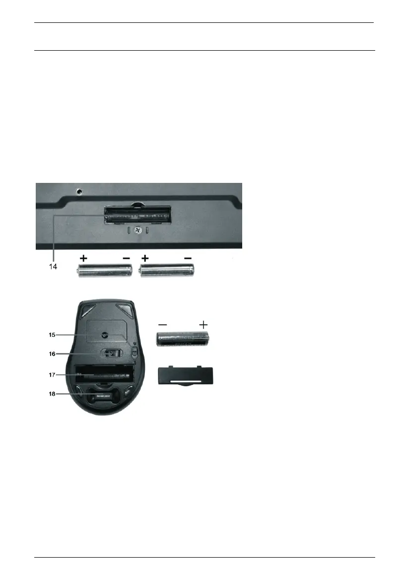 a bezdrátové myši. Při vkládání dbejte na dodržení správné polarity baterií