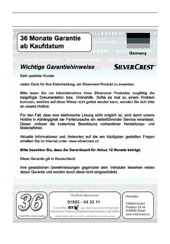 Silvercrest Wireless Optical PC Mouse - Garantiehinweise