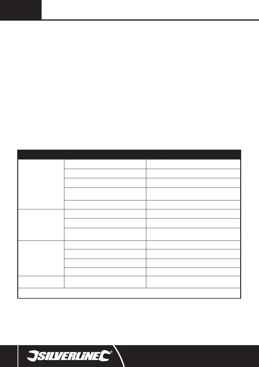 Valvola a farfalla ad anello o sede della valvola danneggiata Far riparare l’utensile da un centro specializzato Silverline