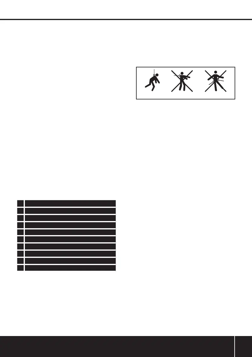 • Dieser Auffang- und Haltegurt eignet sich nicht für Anwendungen, bei