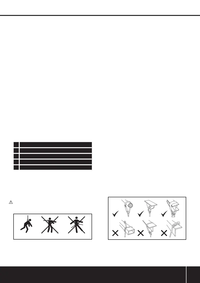 • Vérifiez les longes (5), les cosses des cordes (3) et les manchons