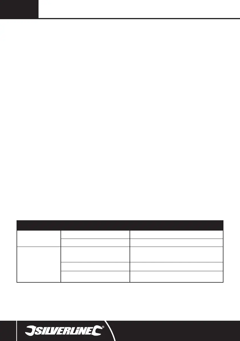 Defective ON Switch Replace the ON Switch at an authorised Silverline service centre