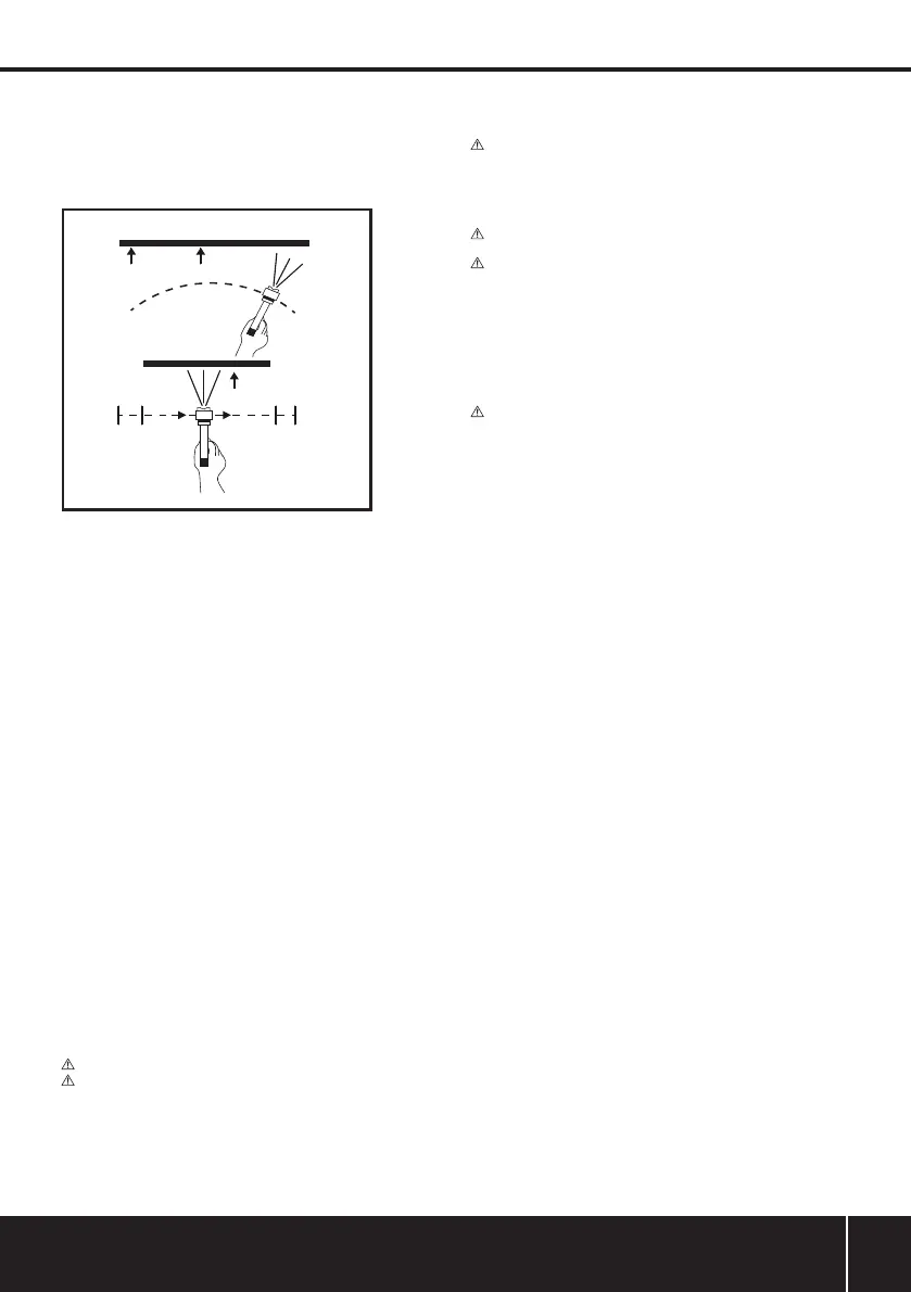 • Hold the air brush so that the front nozzle is approximately 150mm from the surface to be