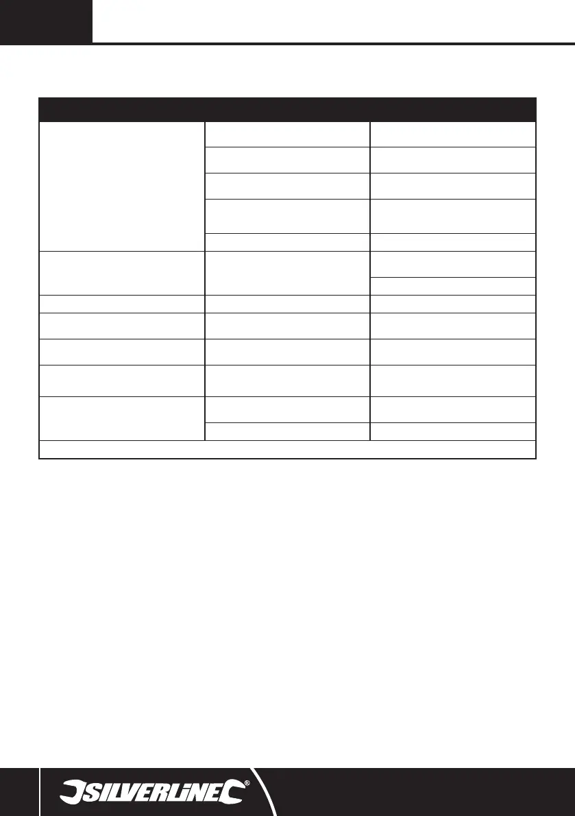 Tool will not stop after trigger is fully released Throttle valve O-ring or valve seat damaged Have the tool repaired at an authorised Silverline service centre