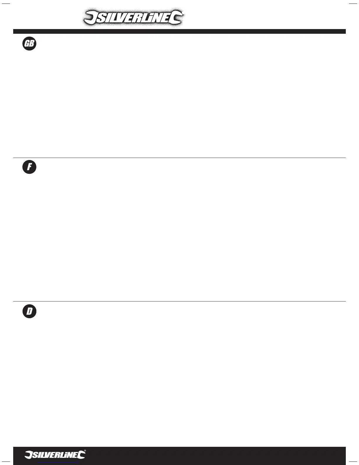 • Before each use, check if any part of the tool is damaged or missing. Carefully check that