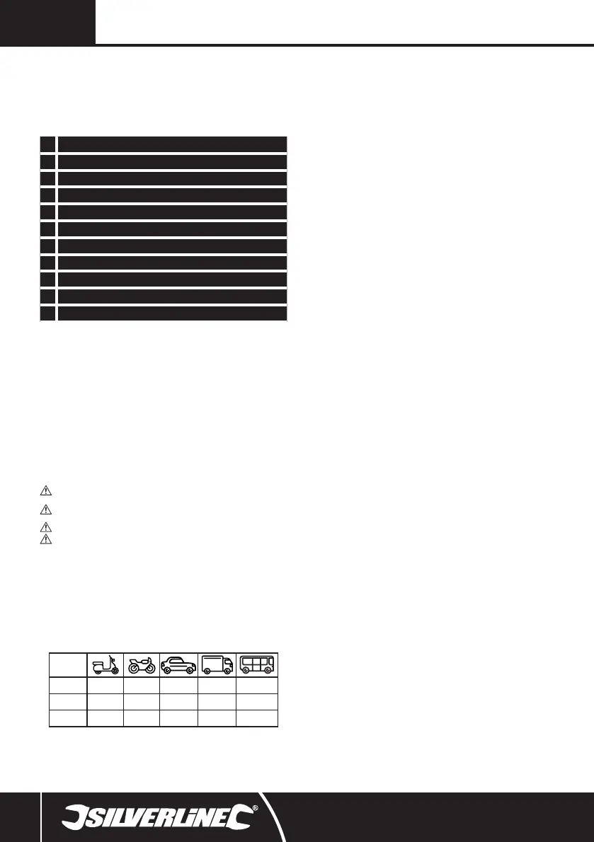 • Este cargador es solamente compatible con baterías para vehículos de 6 y 12 V con cable