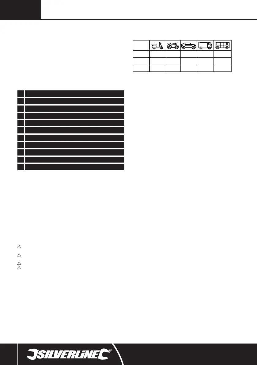 • Questo caricabatteria è adatto esclusivamente all’utilizzo su veicoli elettrici con batterie da 6 V/12