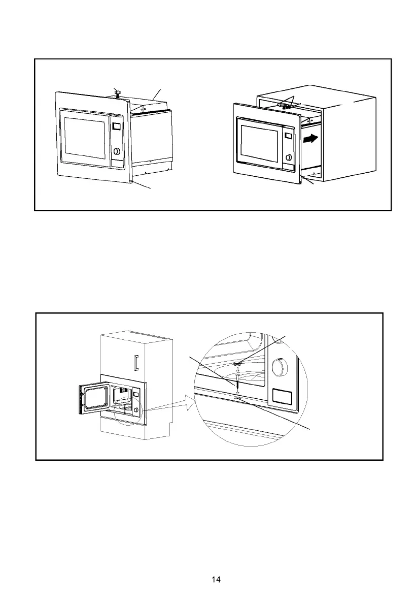 2. Apri la porta; fissare il forno al mobile con la VITE B in corrispondenza del