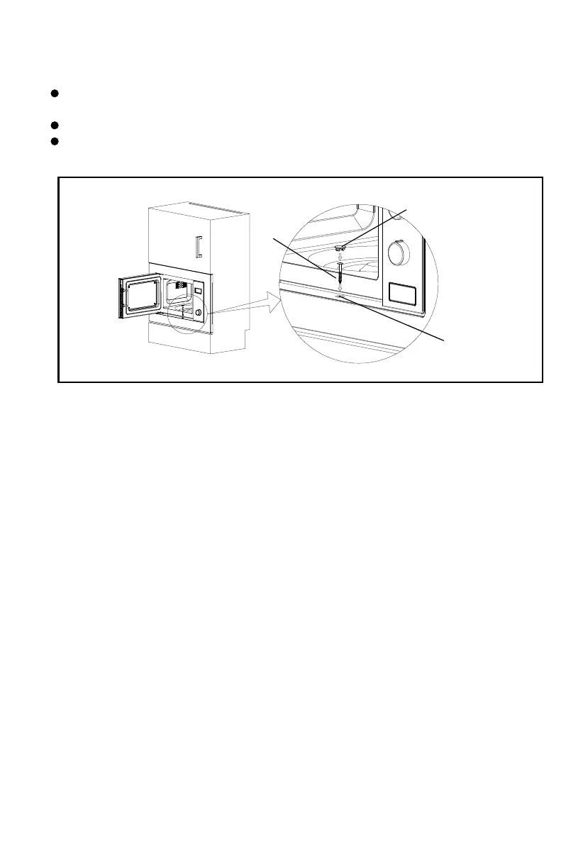 2. Open the door; fix the oven to the cabinet with SCREW B at the