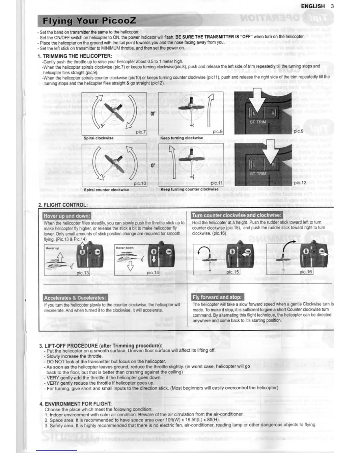 Silverlit PicooZ - Flying Your PicooZ; TRIMMING THE HELICOPTER; FLIGHT CONTROL; LIFT-OFF PROCEDURE