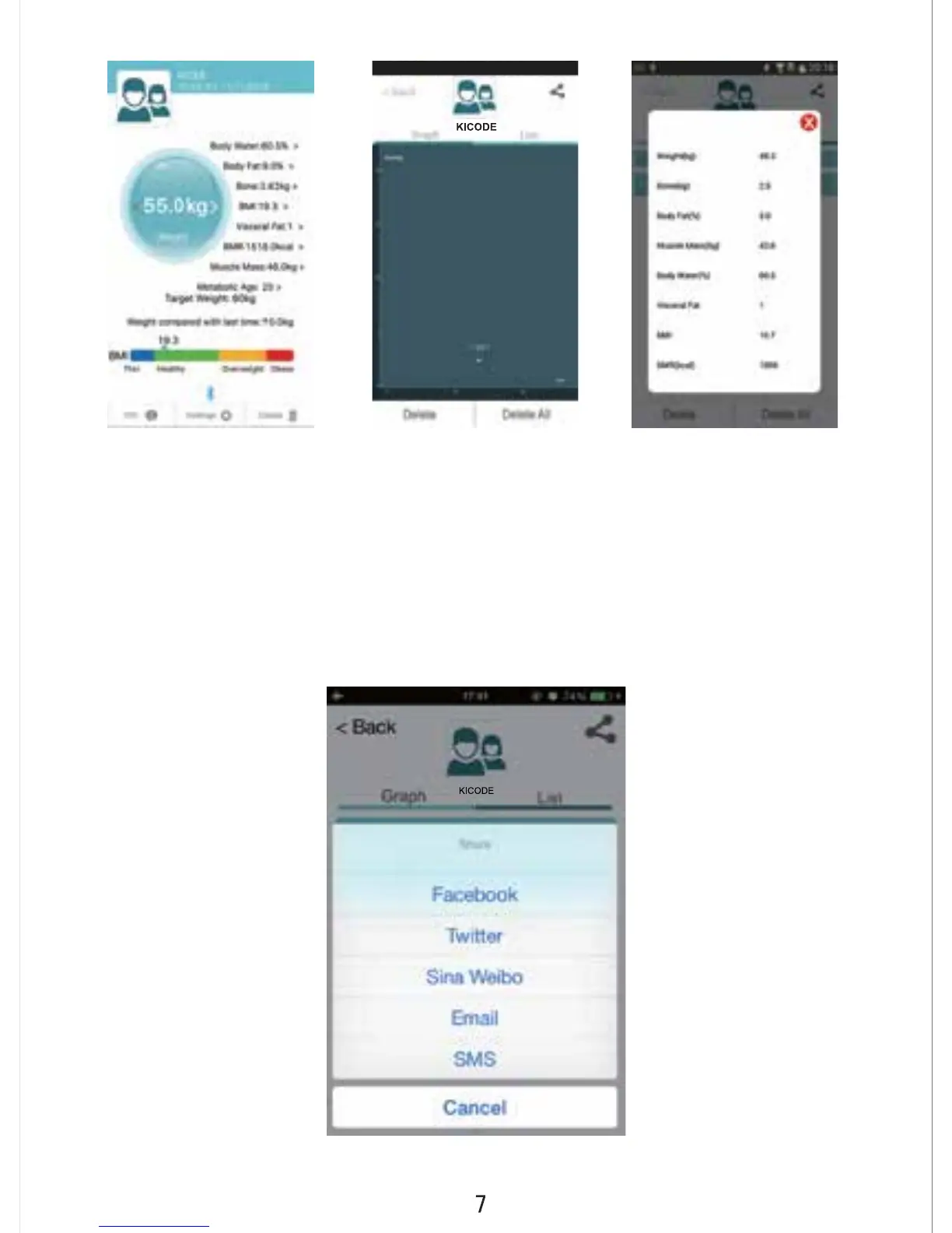 7. To share your data while browsing the Graph or List screens, tap the “Sharing”