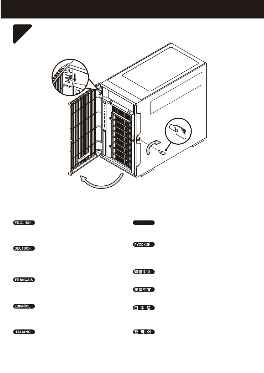フロントパネルを開き、ラッチを押してドアを取り外します