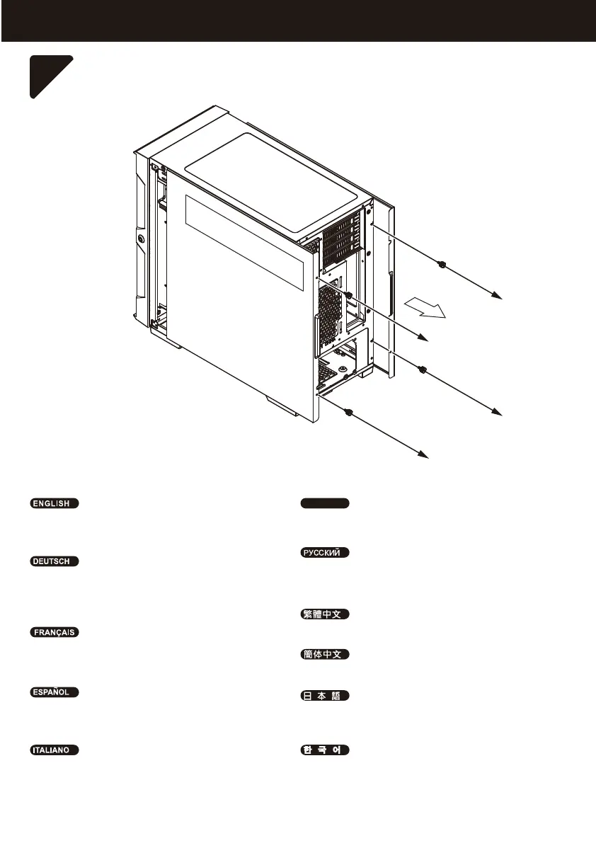 Retire los paneles laterales quitando los 2 tornillos de cada