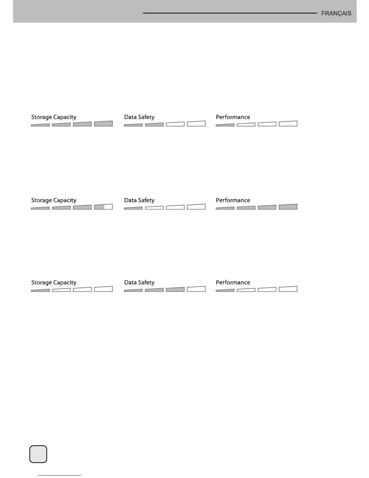 utilisé séparément. Si un disque tombe en panne, l'autre ne sera pas affecté. Ce réglage n'offre