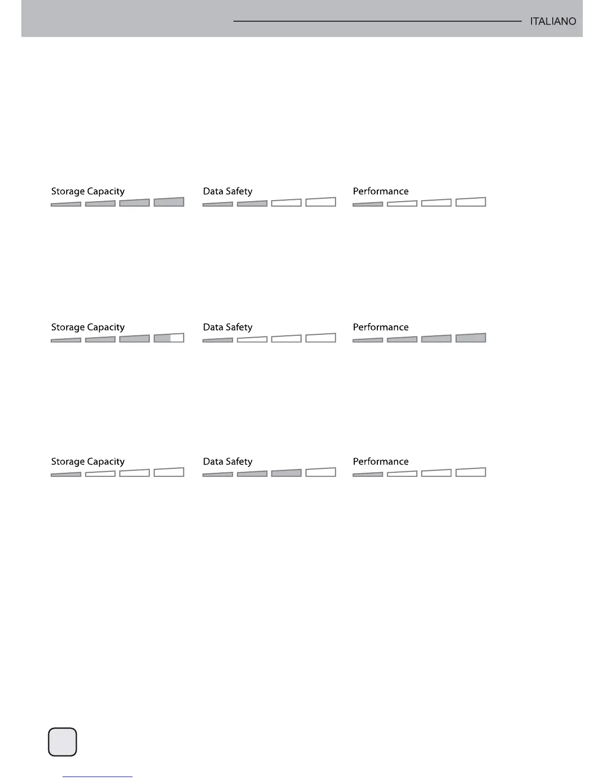capacità minore. Questa modalità viene utilizzata quando la velocità è l’obiettivo primario ma il RAID 0