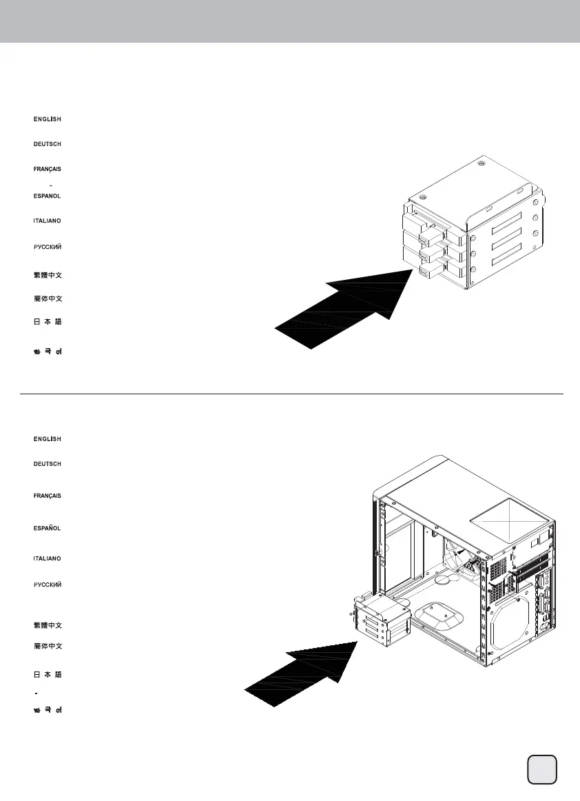 into the case. All cables required for the drives installed in the 2.5” drive cage should all be connected as well.